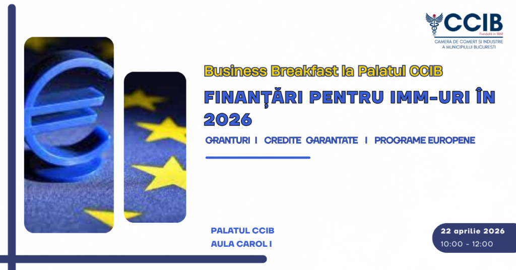 Business Breakfast la Palatul CCIB cu tema: FINANȚĂRI PENTRU IMM-URI ÎN 2026 – GRANTURI, CREDITE GARANTATE, PROGRAME EUROPENE