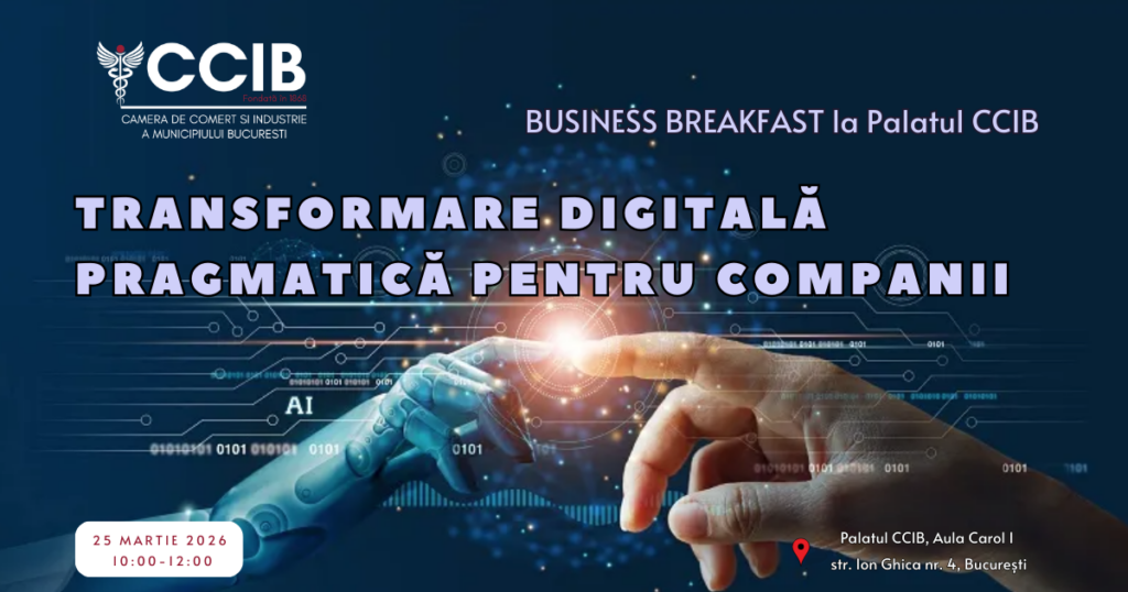 Breakfast la Palatul CCIB cu tema: TRANSFORMARE DIGITALĂ PRAGMATICĂ PENTRU COMPANII03.03.2026autorCristina Serbanescu