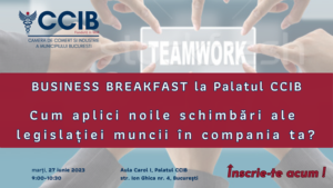 O nouă ediție a Business Breakfast la Palatul CCIB: „Cum aplici noile schimbări ale legislației muncii în compania ta?”15.06.2023